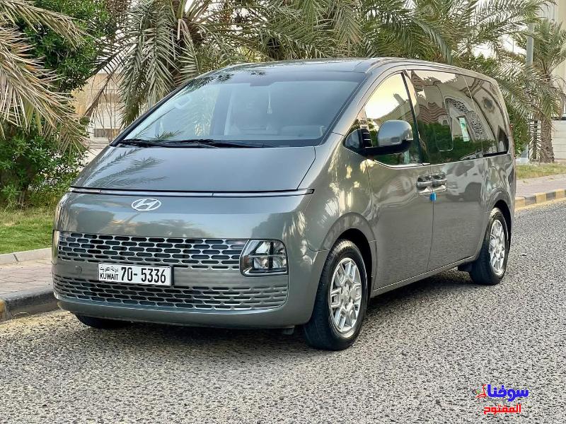 للبيع هيونداي ستاريا موديل 2023 لون مميز رمادي الجديد ماشي فقط 22 الف كيلو وارد الوكاله وعليها جهاز لكبار السن